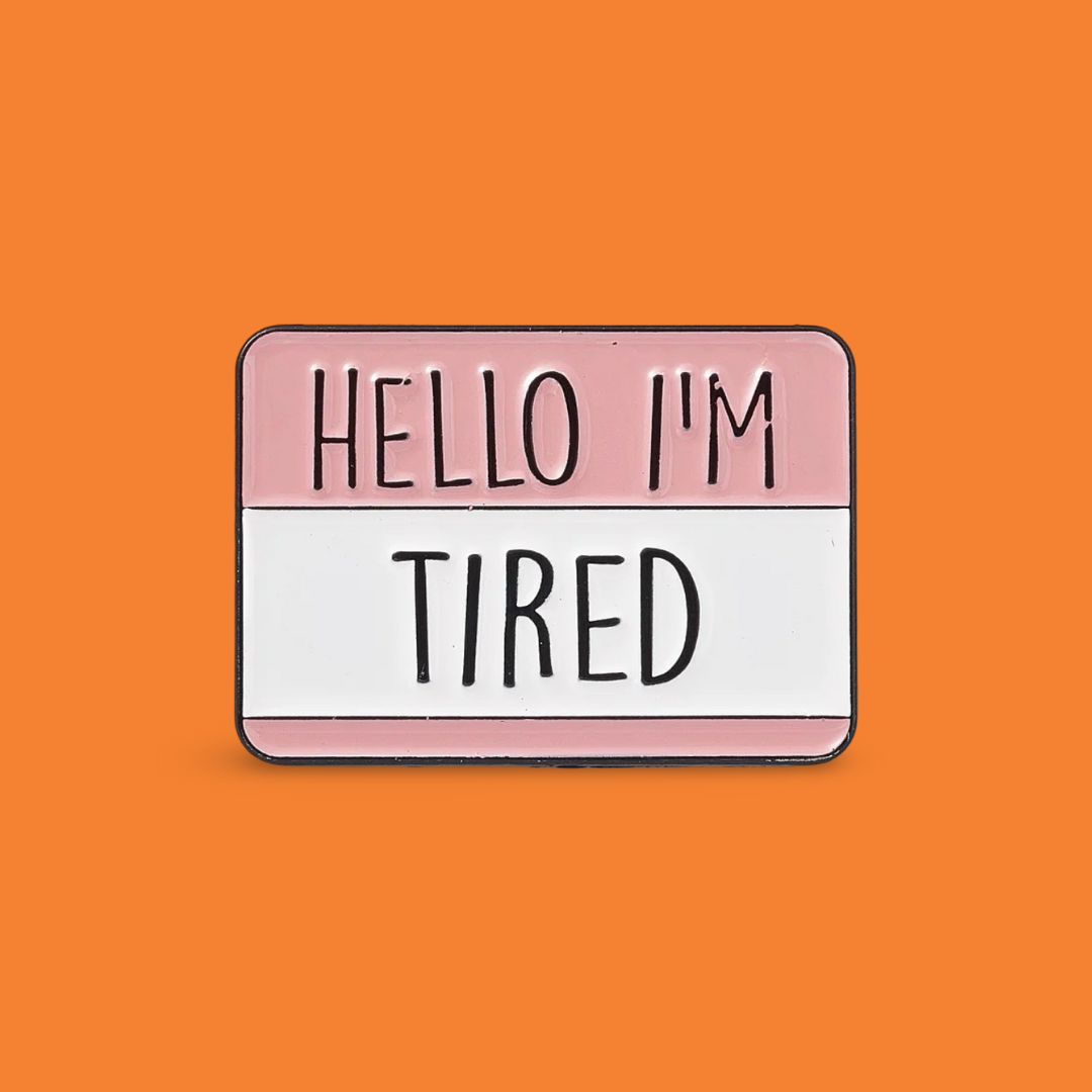 The “Hello I’m Tired” pin says what we’re all thinking – so you don’t have to.