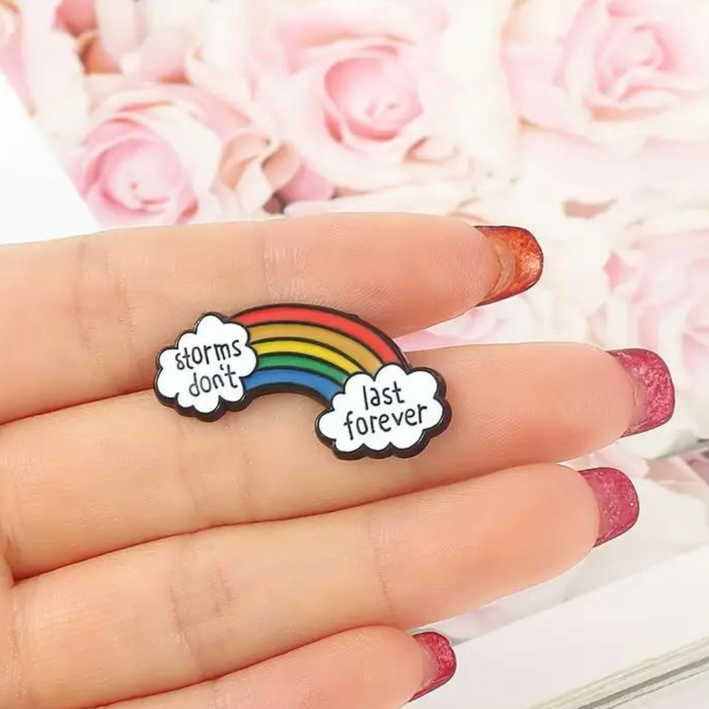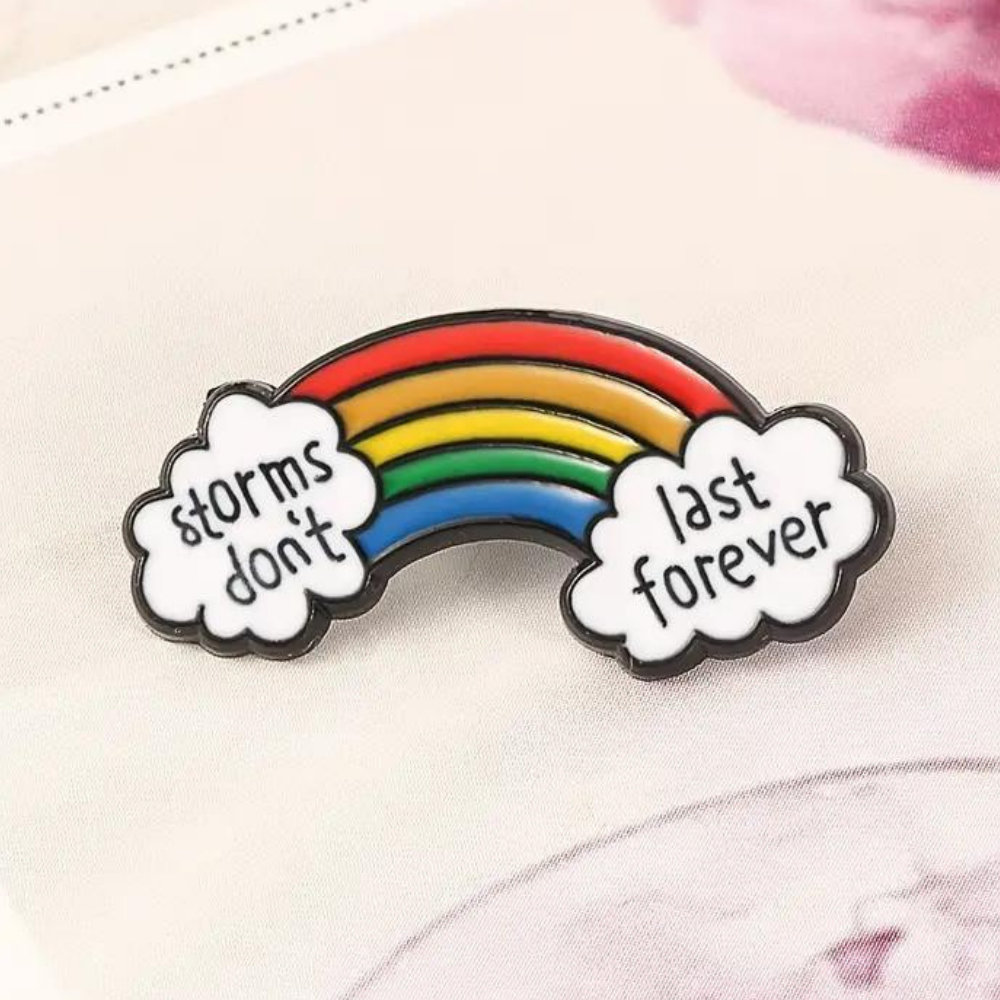 This enamel pin is a wearable reminder that tough times pass and brighter days are ahead.