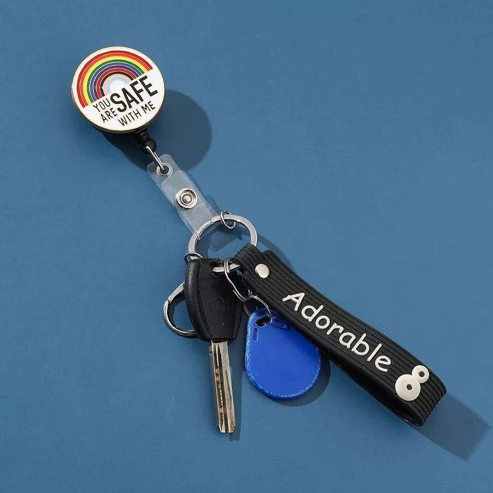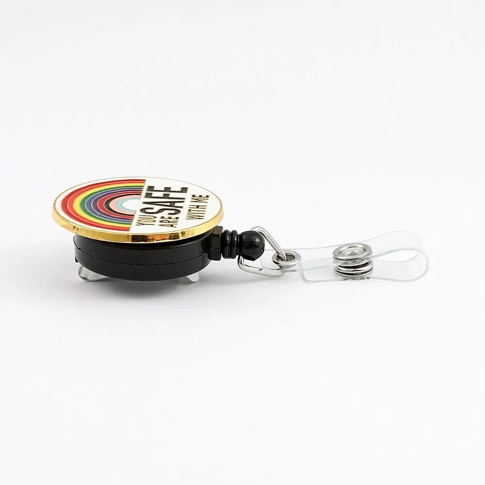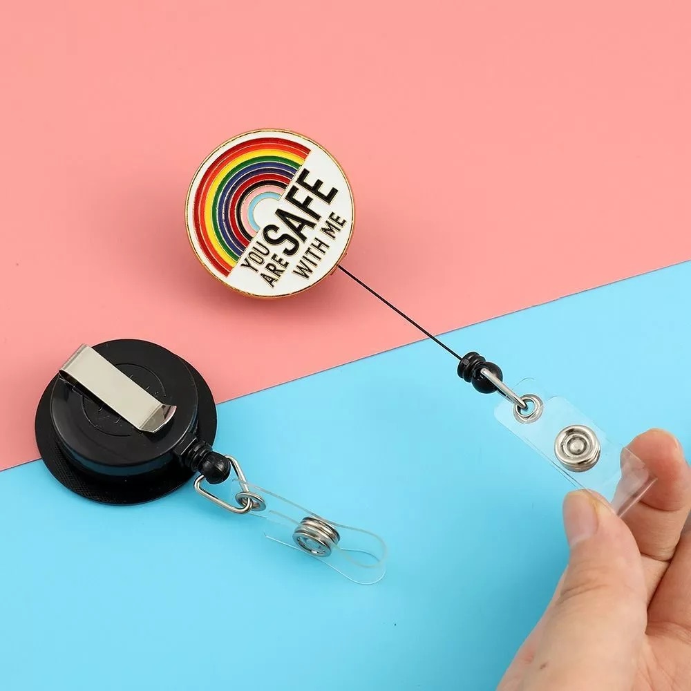 Let your badge do the talking. These retractable reels feature the phrase “You Are Safe With Me” in two vibrant, pride-positive designs. Perfect for educators, health workers, or anyone creating safer spaces, these badges show support, spark conversation, and spread love with every clip and swipe.